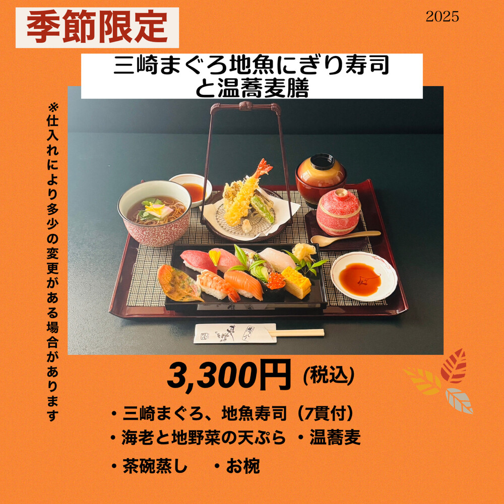 HOME / お知らせ / 三崎まぐろ地魚にぎりとお温蕎麦膳