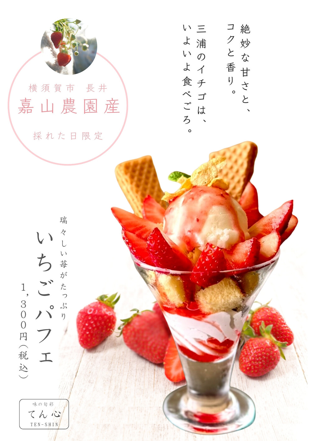 長井嘉山農園産のいちごを使った「パフェ」始まってます!